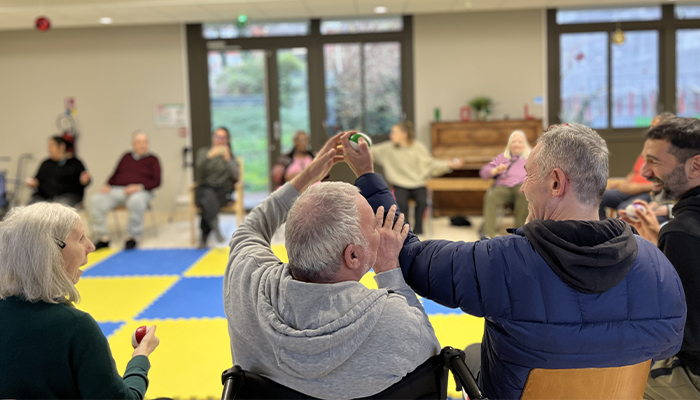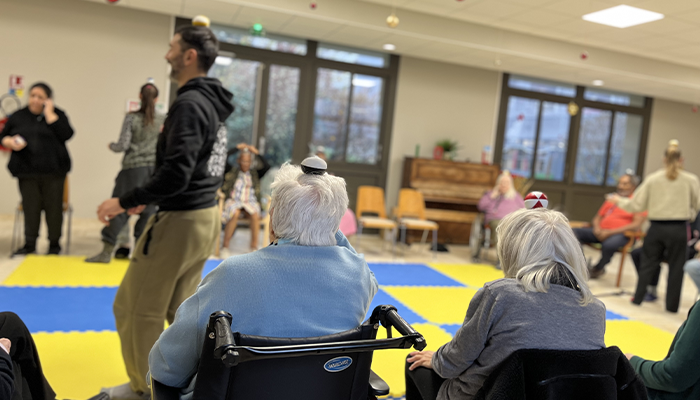 Une fois par mois, trois intervenant·es de l’Académie Fratellini se rendent en EHPAD avec leur bonne humeur et du matériel pour deux heures d’atelier cirque.