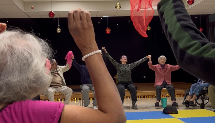 Existe-t-il un âge limite pour faire bouger son corps ? Ce n’est pas l’avis des équipes de l’Académie Fratellini qui, depuis 2019, proposent des ateliers en EHPADs et ont lancé en 2022 le projet « Acrobates à tout âge » avec les résidences pour personnes âgées Camille Saint-Saëns (Épinay-sur-Seine), Saint-Vincent de Paul (Stains), Constance Mazier (Aubervilliers) et La Seigneurie (Pantin). Un projet sur 3 ans soutenu par la Fondation des Petits frères des pauvres et par la Conférence des financeurs de la Seine-Saint-Denis.