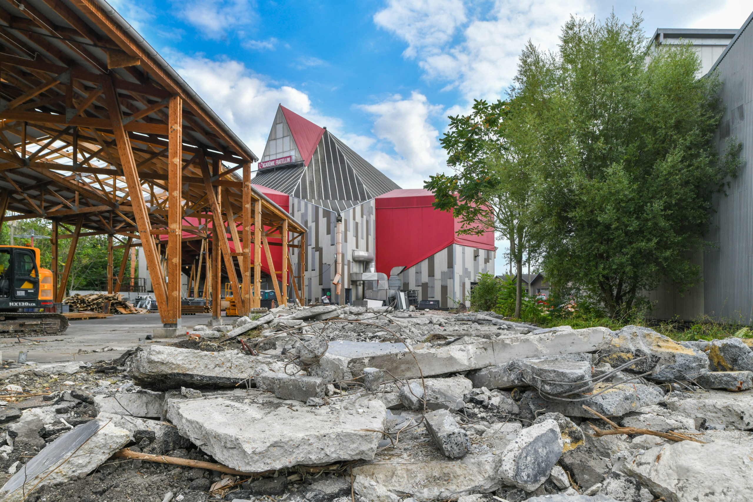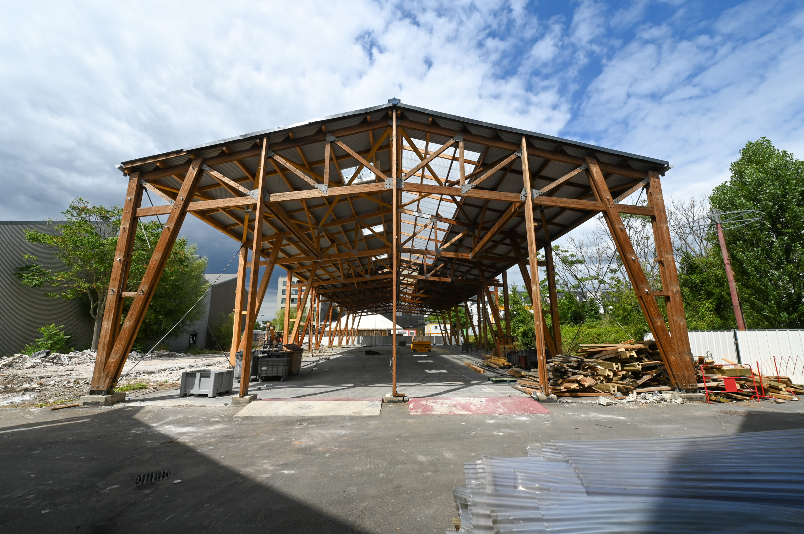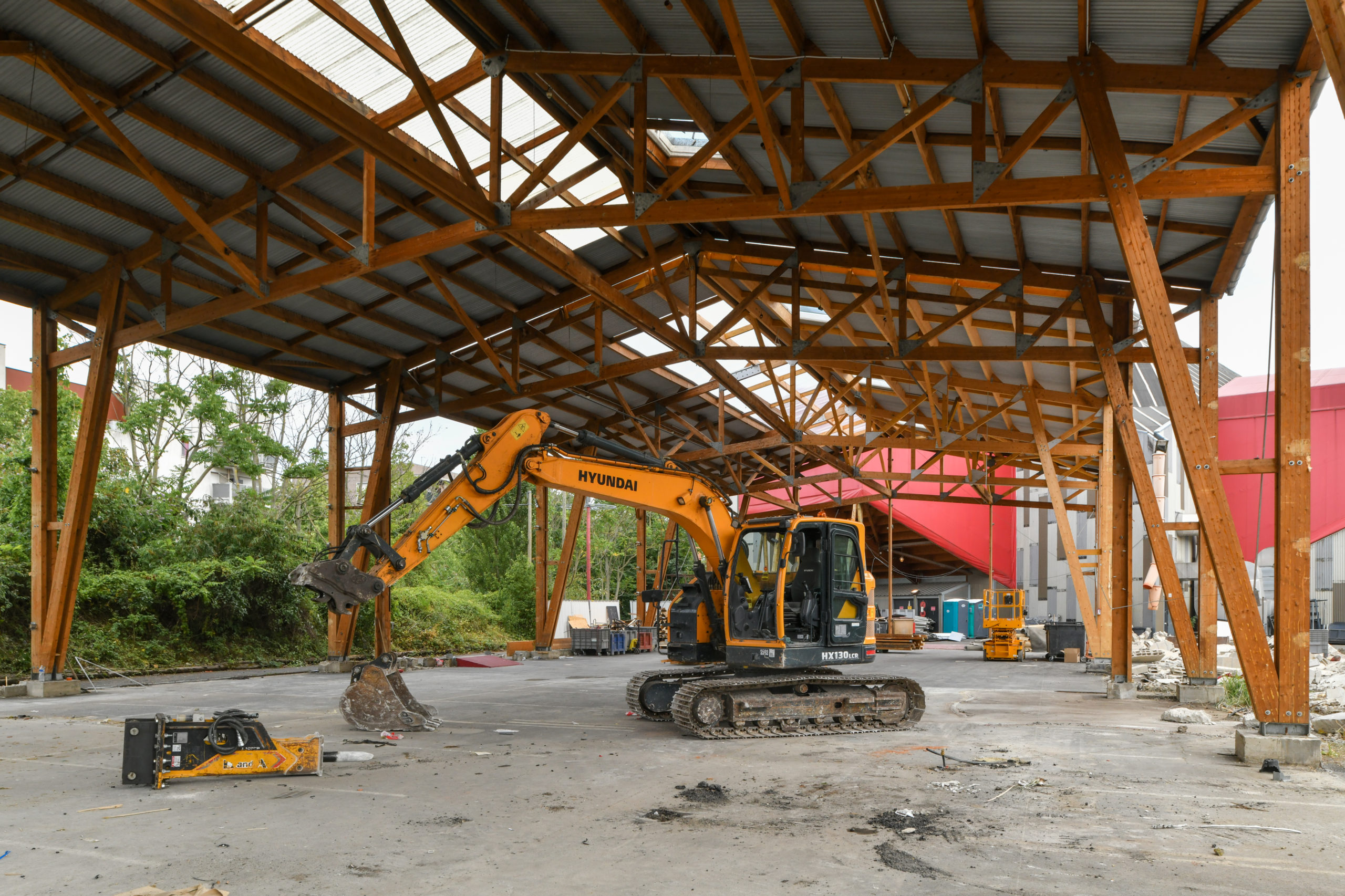 La Halle a été mise à nue. Ne demeure plus que sa structure.