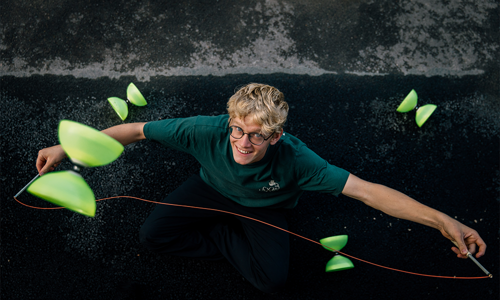 Till Monfort a 20 ans et vient de Borlon (Belgique). Dès l’âge de 6 ans, il s’essaye à de nombreuses disciplines de cirque : acrobatie, mât chinois, fil de fer, jonglage. Après deux ans d’école préparatoire à Lille, il intègre en 2025 l’école supérieure des arts du cirque de l’Académie Fratellini en 1ère année en diabolo.