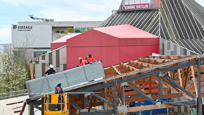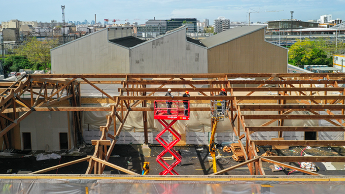 Le début du premier semestre 2024 a été consacré à la préparation de la Halle : la structure a été mise à nue, l’ancienne toiture faite de simples tôles a été déposée.