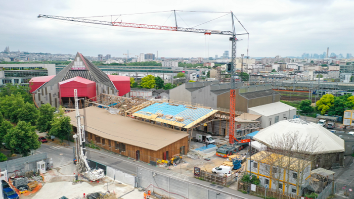 Dans les semaines à venir, les principaux travaux seront les suivants : le levage du studio de création, l’installation des grandes façades vitrées de la Halle (mise hors d’eau et hors d’air) et l’aménagement de la noue paysagère en lieu et place des bâtiments de chantier abritant les bureaux provisoires de l’administration.