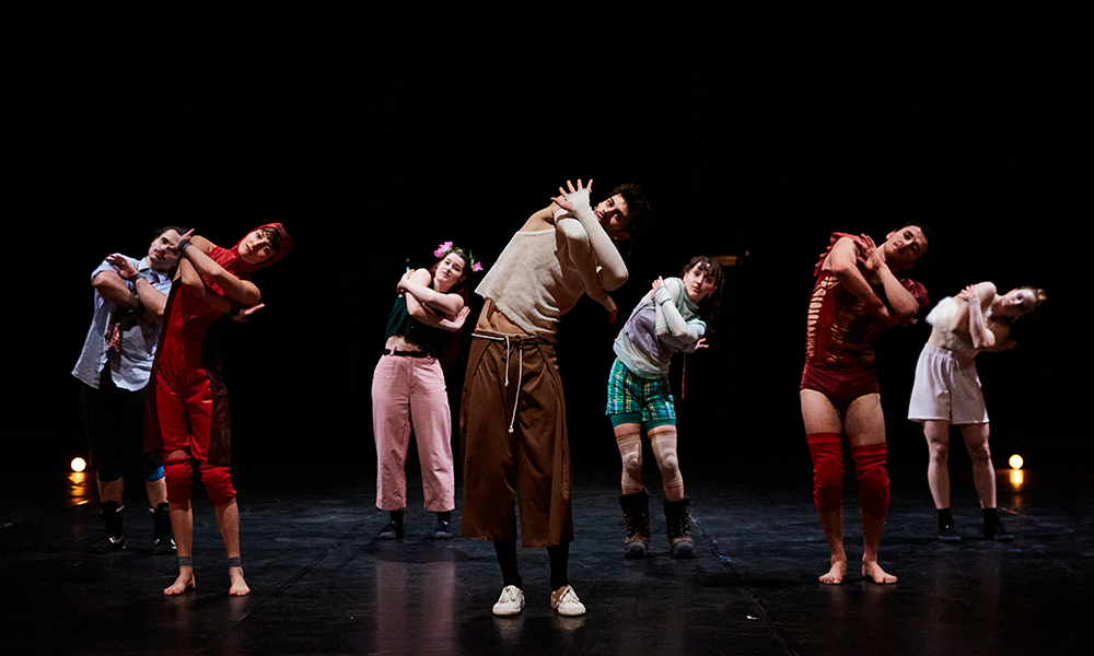 Sur scène, au son d’une musique qui entremêle Vivaldi et des sonorités hip-hop et électroniques, les huit artistes dansent et s’emparent de leurs disciplines de cirque (acrobatie, monocycle, cadre coréen, fil de fer, équilibre) pour explorer et tenter de comprendre le monde qui les entoure.