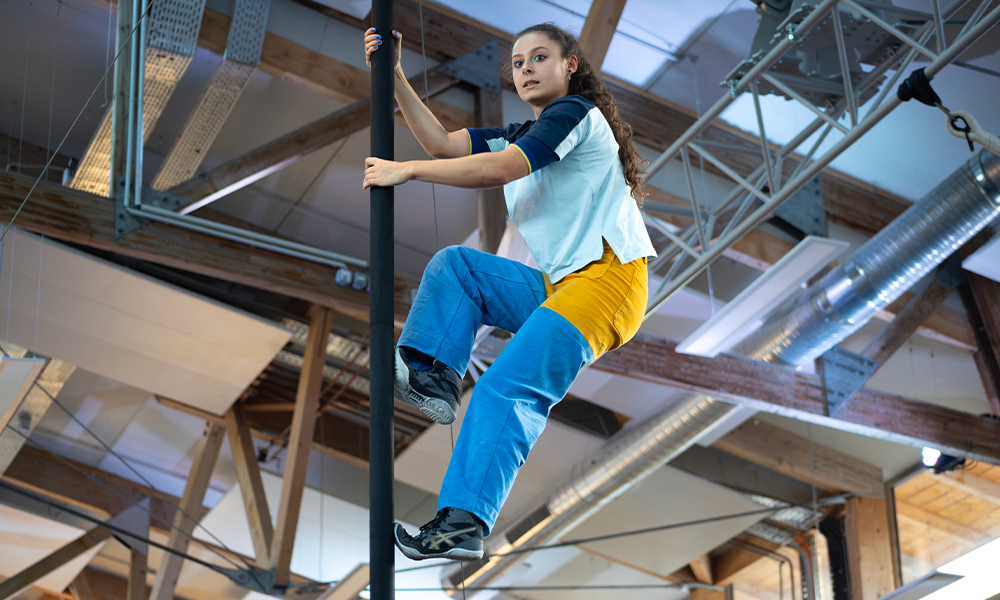 J’ai pris les mesures des trente-quatre apprenti·es. Je leur ai demandé s’il y avait une partie du corps qu’ils avaient besoin de protéger ou au contraire de laisser à nu, selon leur discipline. Tous ont en commun un besoin de grande amplitude de mouvement. Un des défis de la commande était de faire des costumes qui s’adapte à tous leurs agrès. Car certains agrès sont très spécifiques, comme le mât chinois, qui nécessite des couches de tissu plus épaisses, des manches et des pantalons longs, ou le jonglage où il faut éviter les coupes trop amples. Il fallait réfléchir individuellement et collectivement, tant en termes de contraintes que d’esthétique.