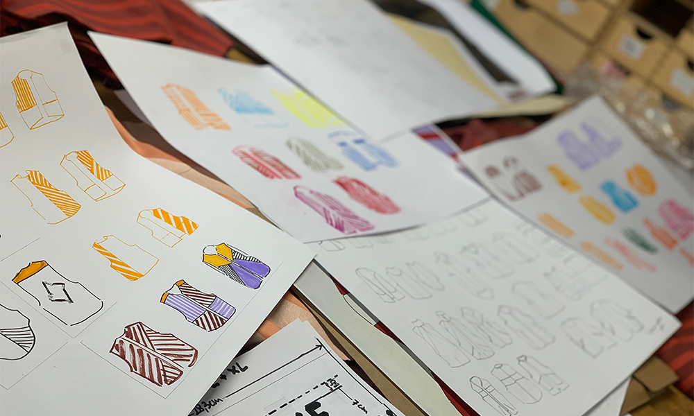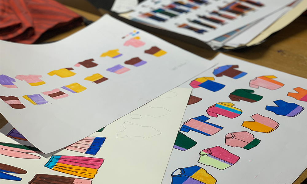 Avec l’administration, nous avons validé un concept simple et fort visuellement : de grandes lignes horizontales et verticales sur les hauts et bas de chaque silhouette, dans une gamme de couleur très élargie, afin d’avoir un grand nombre de pièces assemblables à l’infini.