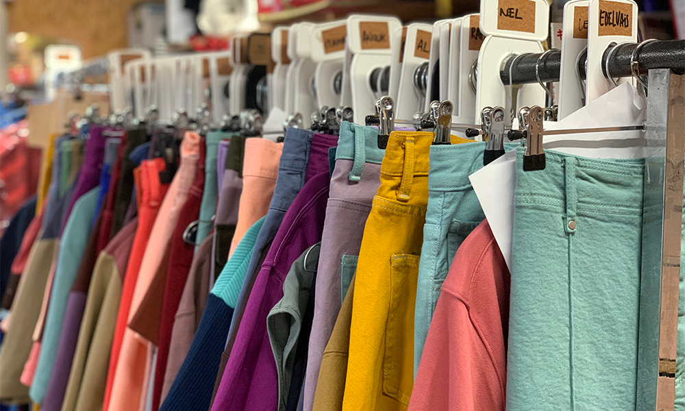 Dans le cadre de leur cursus, les apprenti·es participent à des créations très courtes, qu’ils interprètent une ou deux fois maximum. Il leur faut des costumes, mais malheureusement on n’a ni le temps ni les sous nécessaires à la création ou à l’achat de costumes pour chacune de ces productions. On y a réfléchi, et on s’est dit qu’au bout du compte, il serait plus simple de créer une ligne de costumes dans laquelle les apprenti·es pourraient piocher.