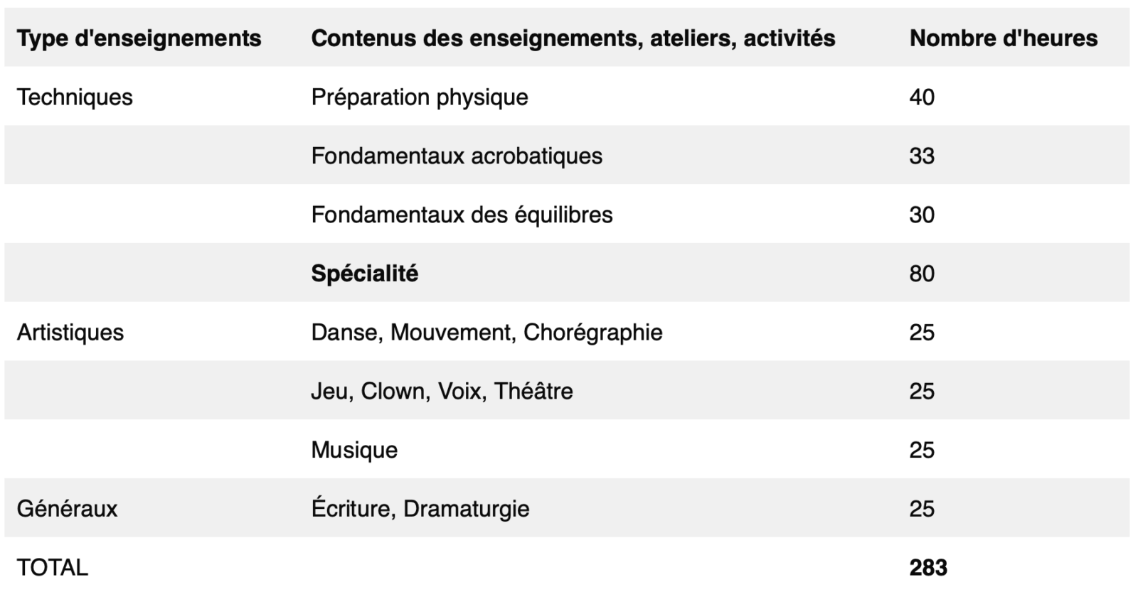 La classe de préapprentissage forme au métier d’artiste de cirque et prépare aux concours d’entrée en école supérieure de cirque en :