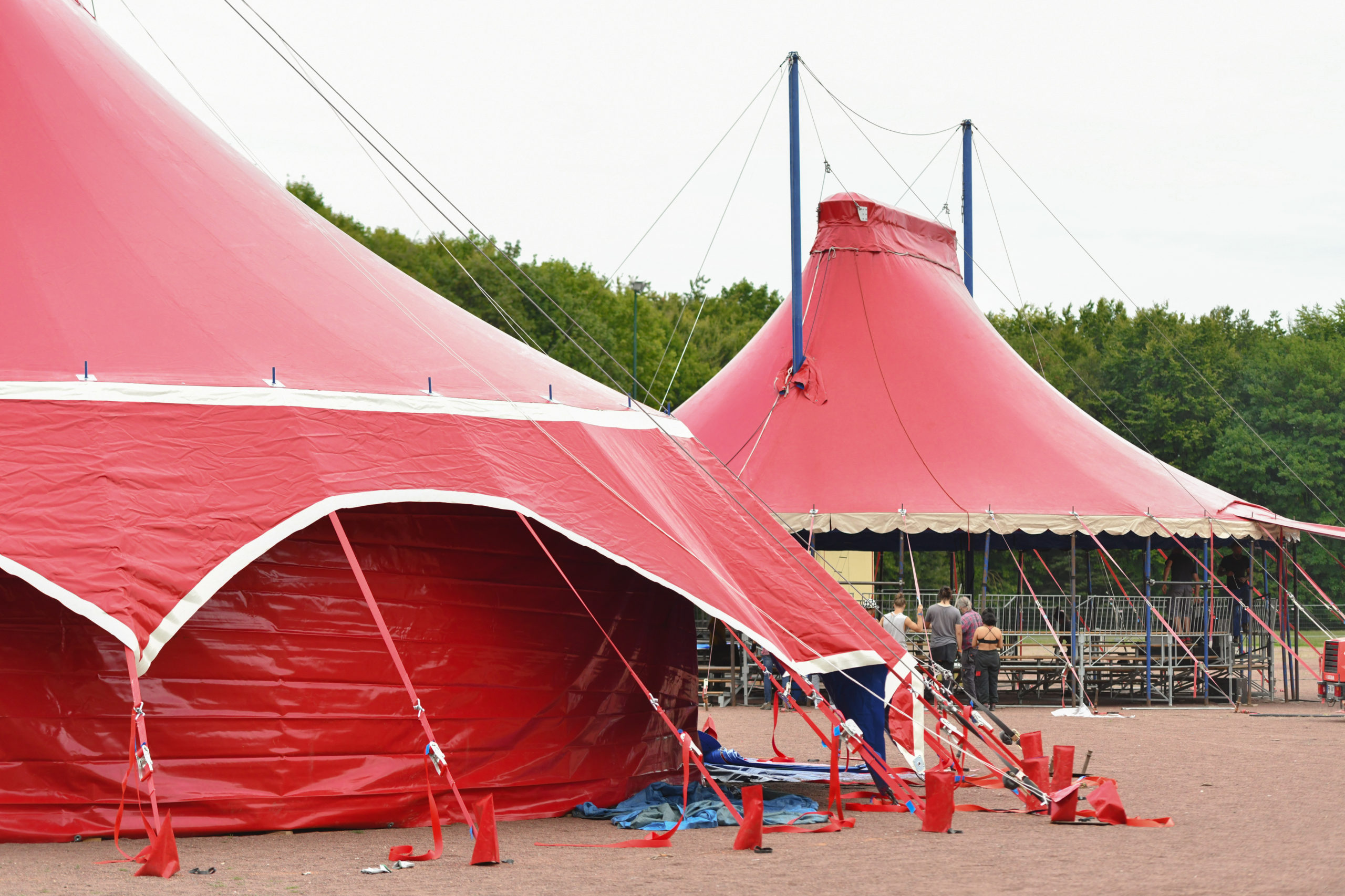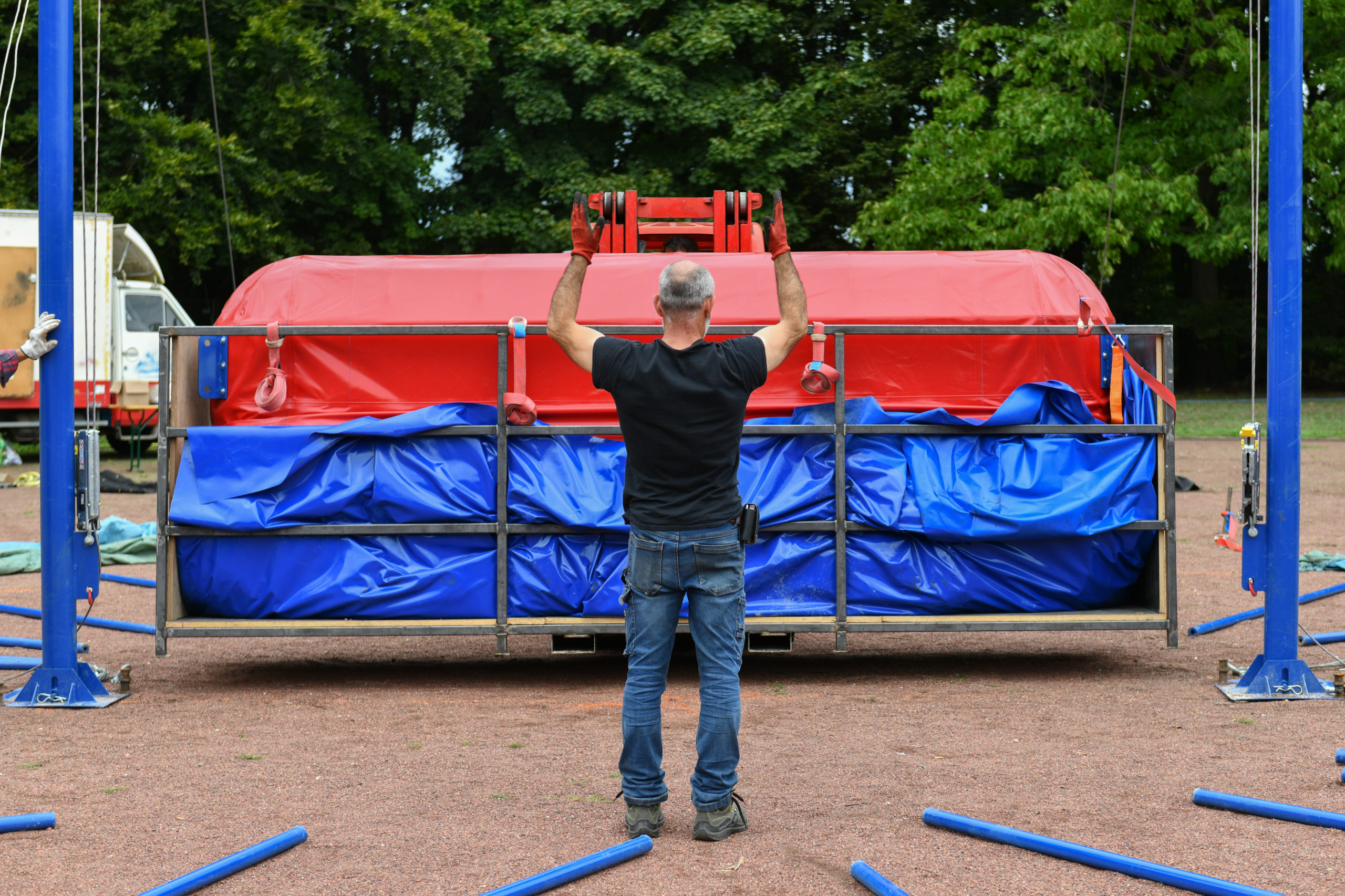 Les équipes techniques de l'Envolée Cirque et de l'Académie Fratellini ont débuté le montage des chapiteaux.