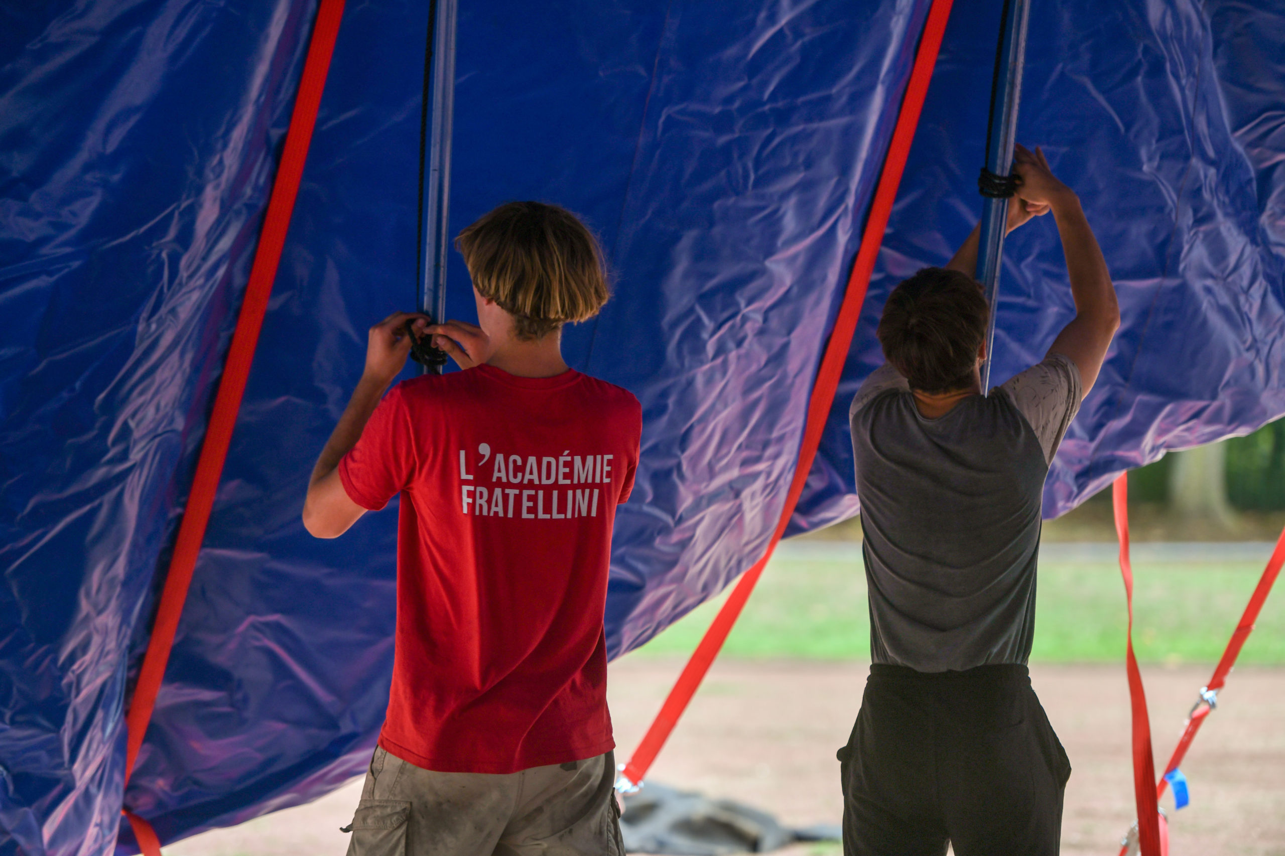 Les apprenti·e·s du CFA de l'Académie Fratellini ont participé au montage des quatre chapiteaux.