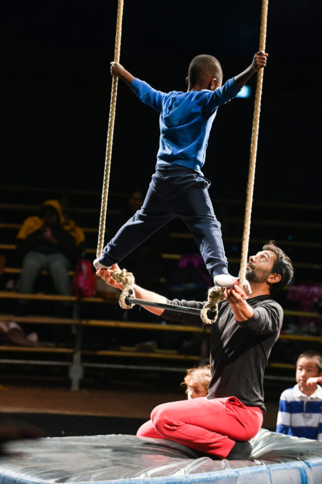 ©Les élèves en visite s'initient aux arts du cirque lors d'un atelier.