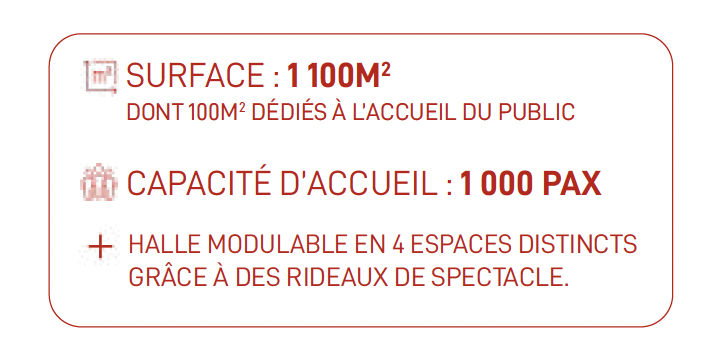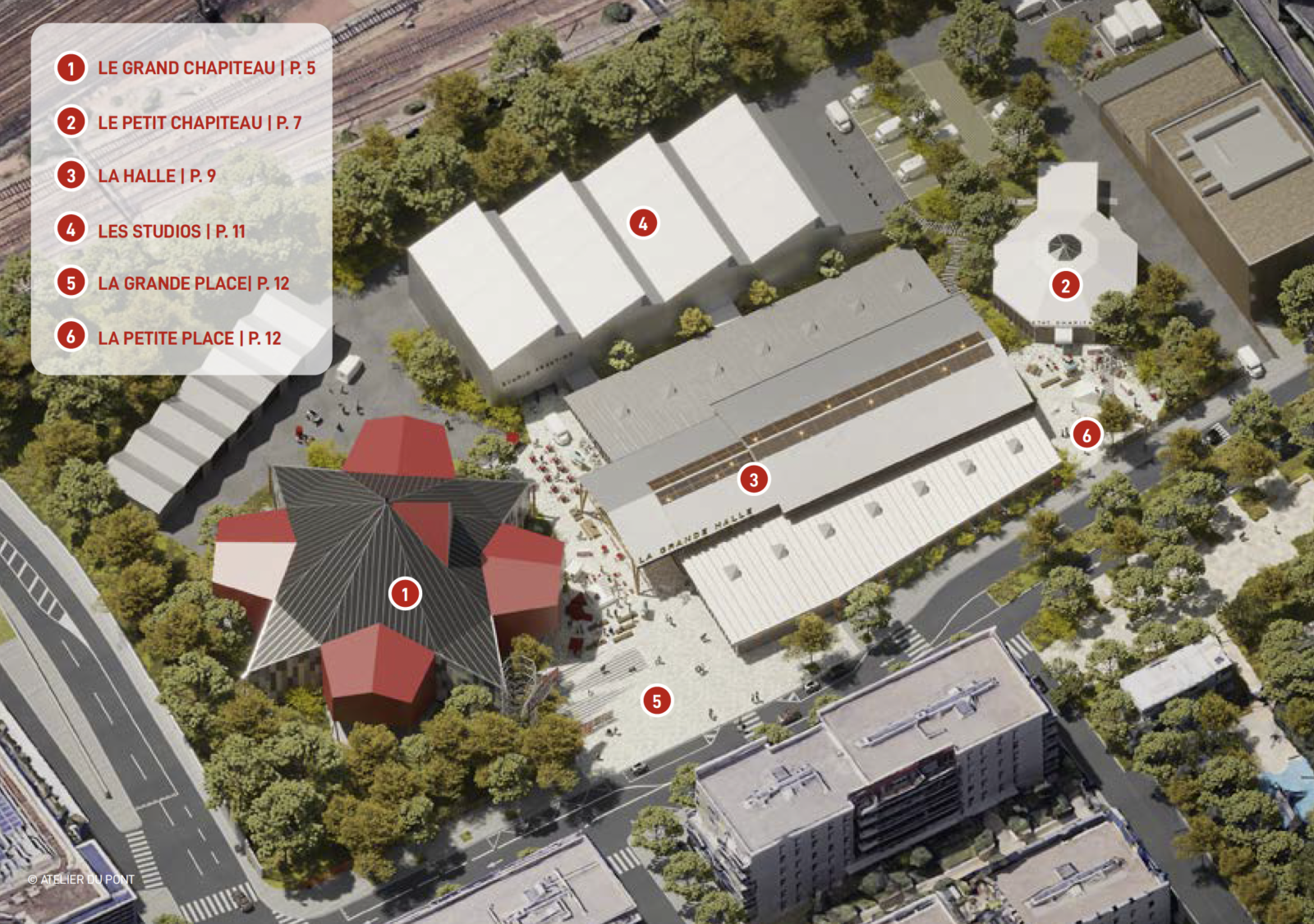 3 espaces phares : la Halle, le Grand Chapiteau et le Petit Chapiteau