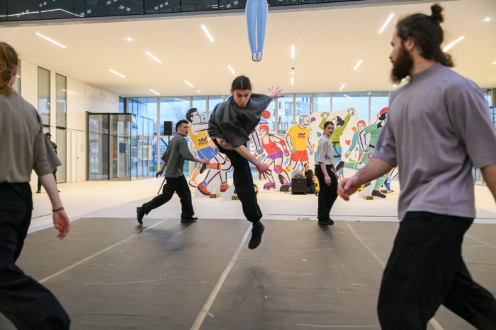 Signatures, c’est la cohésion de dix interprètes aux identités artistiques multiples, en construction en déploiement. Loin d’assigner les interprètes à des exécutants de mouvements formatés, les MazelFreten sont fidèles aux codes des danses urbaines qui mettent en avant les singularités de chaque artiste qui deviennent vocabulaire de la danse. Par la dialogue entre MazelFreten et les apprenti·es de 1ère année, Signatures souligne la nécessité de se représenter authentiquement pour que chacun·e ait sa place en célébrant la diversité et l’unicité de chaque artiste.